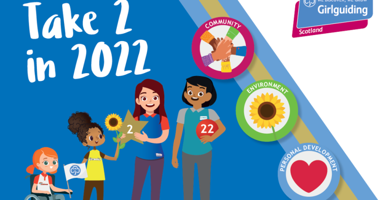 Don’t forget to show us what you’ve been up to on social media using #Take2in2022 and tag us @GirlguidingScot. Scroll down to download the pack and pre-order your badges today!