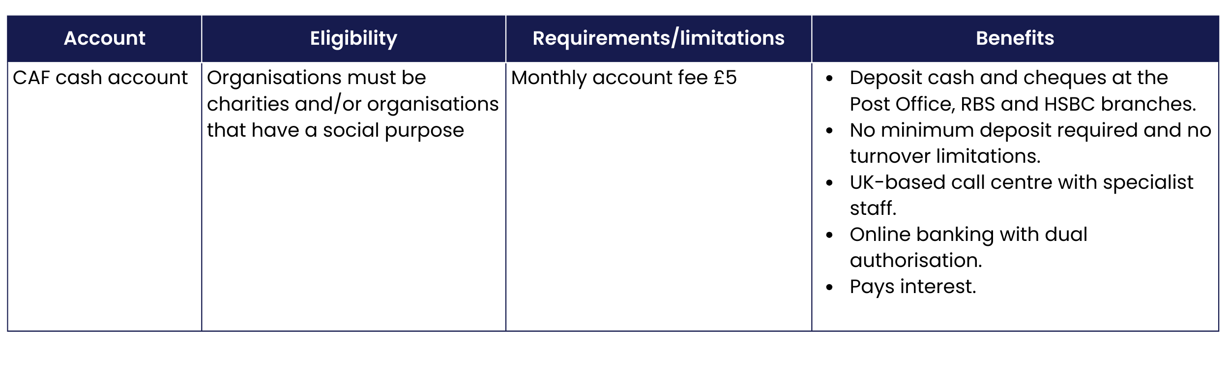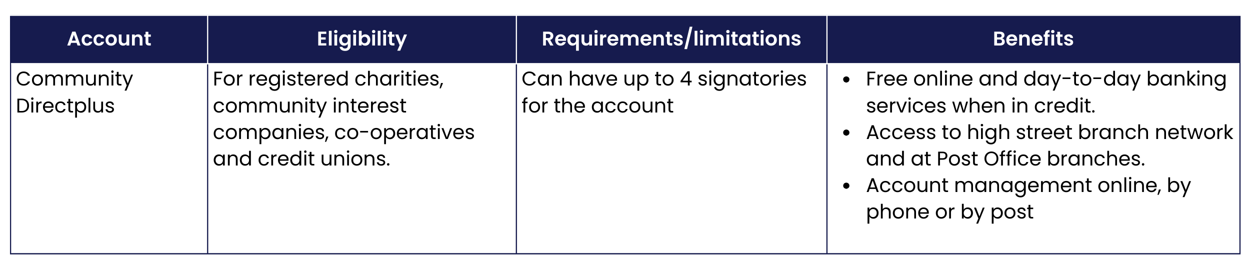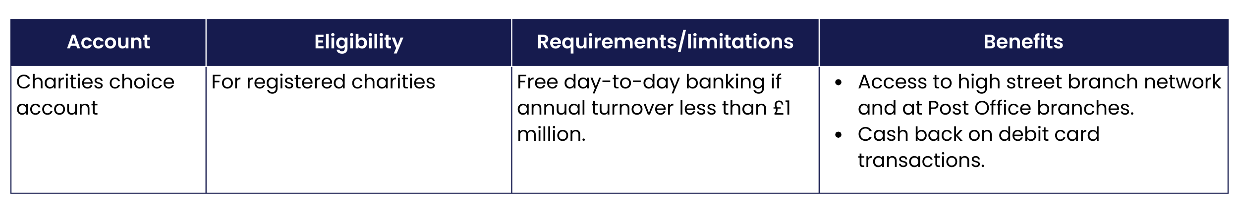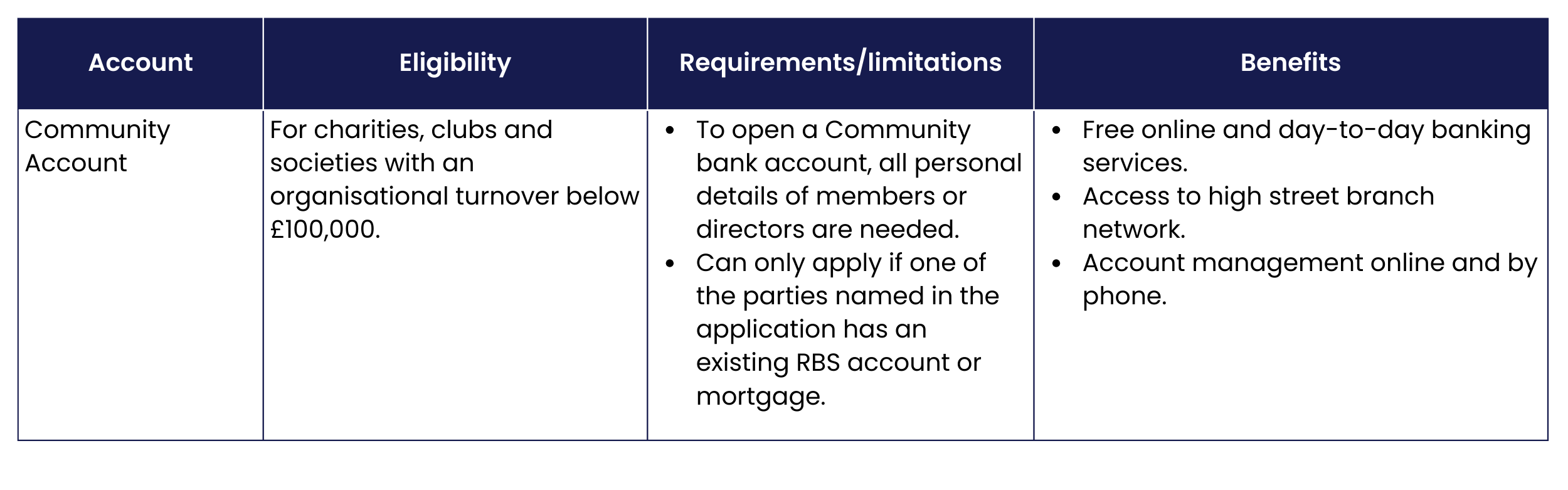 Conditions and benefits vary, and can change over time, so check directly with the bank you’re considering opening an account with. We’ve highlighted the main features of current accounts from institutions that have strong links to the voluntary sector, or who have a presence in Scotland.